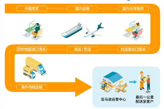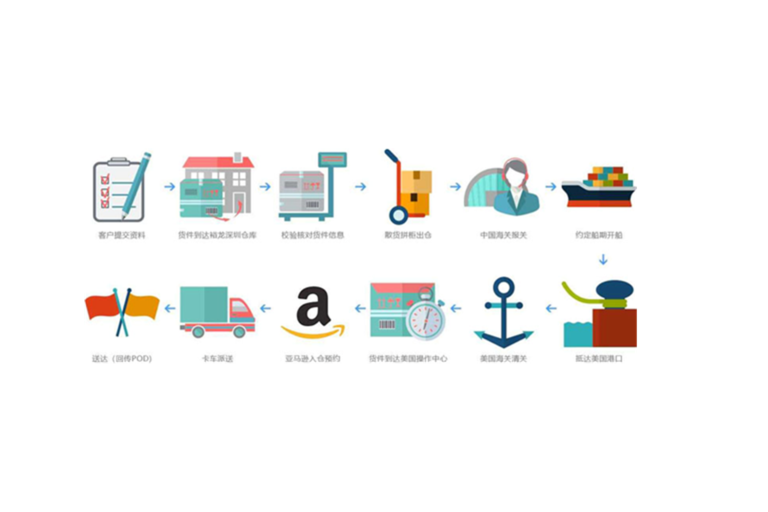 Deliver to the corresponding logistics company warehouse → warehouse operation → customs declaration for export → sea/train/air transportation → import customs clearance → Amazon warehouse reservation → deliver to Amazon warehouse